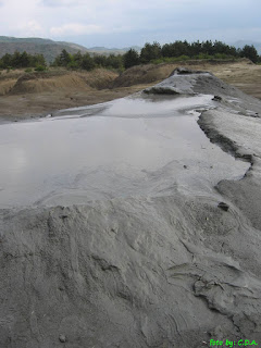 The gasses erupt from 3000 meters-deep towards the surface, through the underground layers of clay and water, they push up underground salty water and mud, so that they overflow through the mouths of the volcanoes, while the gas emerges as bubbles. The mud dries off at the surface, creating a relatively solid conical structure, resembling a real volcano. The mud expelled by them is cold, as it comes from inside the Earth's continental crust layers, and not from the mantle. The mud is also salty, smells like sulfur and contains some highly flammable gases so NO SMOKING IS ALLOWED.